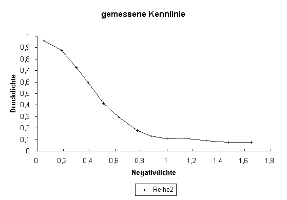| Um das Ergebnis einer Filmentwicklung zu steuern, gibt es zwei grundlegende Gesichtspunkte: - die Gradiation des Dichtekurve wird durch die Entwicklung bestimmt. - Der Entwicklertyp gibt den erreichbaren Bereich der Steilheit vor. - Die Entwicklungszeit bestimmt dann den genauen Wert von Gamma *. Damit kann man den Dichtebereich der Vorlage an den Bereich der Druckplatte anpassen. |